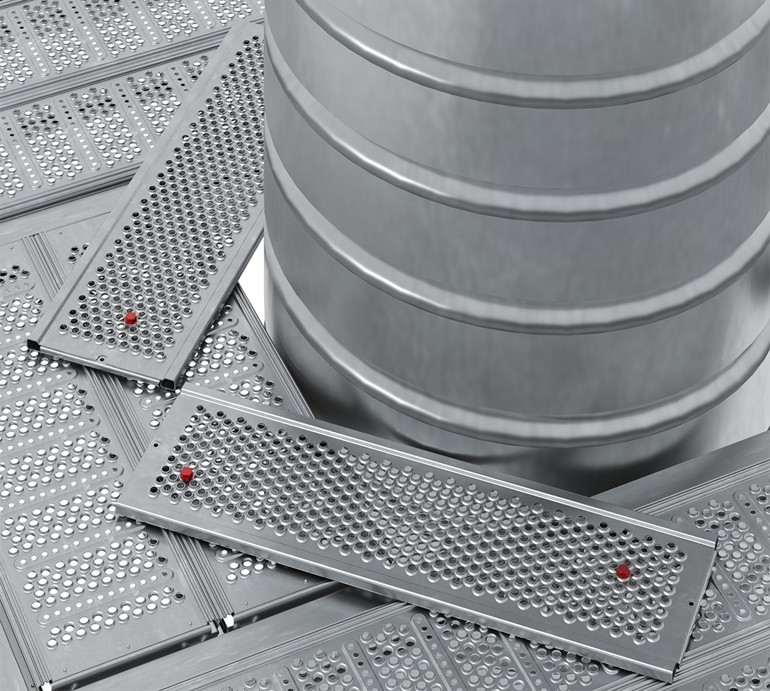 • Komfortables und trittsicheres Arbeiten auch bei Überbrückungen im Eckbereich dank flacher Bauhöhe von nur 20 mm und bewährter Oberflächenstruktur und einfacher Sicherungsmöglichkeit